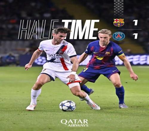 半场结束,球队暂时1:1巴塞罗那。