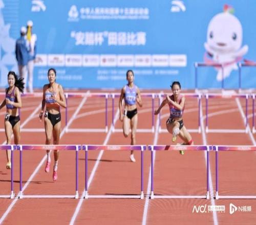 11月16日进行的本届全运会女子400米栏预赛(下图),莫家蝶第一组出战,以57秒21的成绩顺利进入决赛。