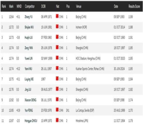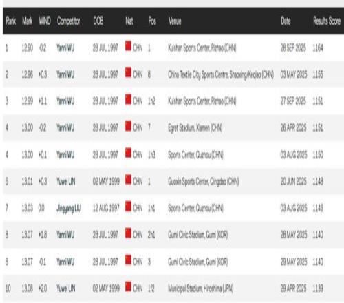 而且,刘景扬的这个成绩也将一跃成为全国现役个人最佳的前三,仅次于吴艳妮和林雨薇曾经跑出过的12秒74。