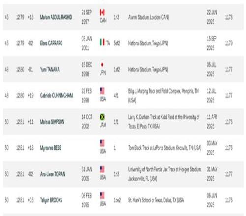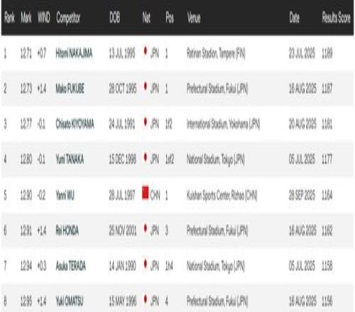 放到亚洲的话,12秒81的成绩依然落后于几位日本选手,在今年排名亚洲第五,不过差距很小。