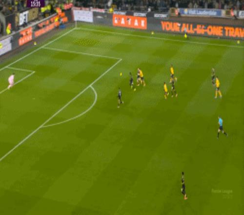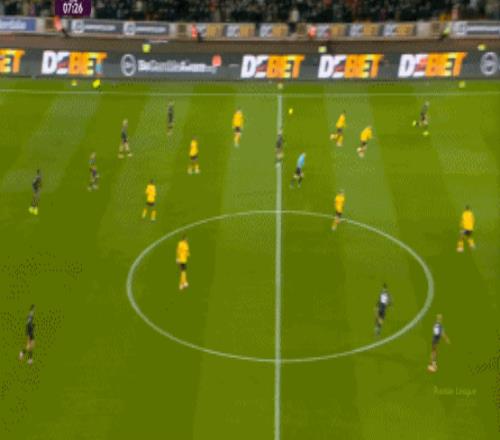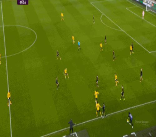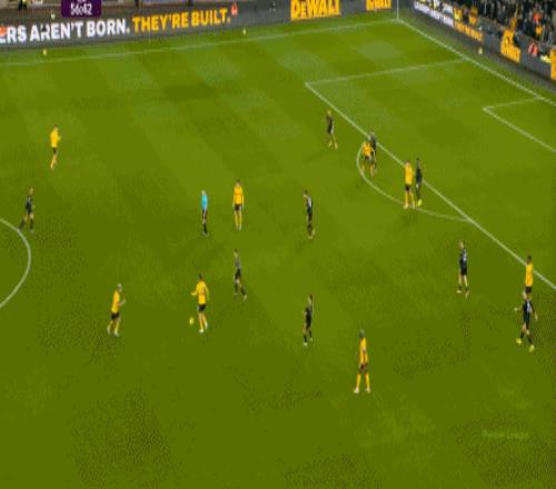 正当曼联即将带着1-0的比分进入中场休息的更衣室的时候,曼联几乎在最后一次防守中出现了问题,面对狼队的连续传中,阿玛德-迪亚洛出现了防守上的松懈: