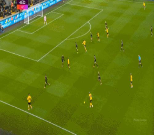 从线路上来说,狼队的进攻仍然具备条理,比如这两次尝试,引出卢克-肖的位置之后,再打海文的意图就很清晰: