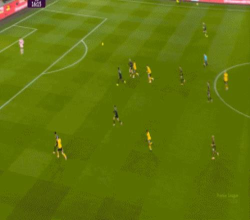 由于巴西人今天出任中锋,所以通过回撤支援中场的方向比他打左半扇更加灵活一点,也比齐尔克泽的回撤更快也更隐蔽一点,比如在开场,他就多次来到右半扇,帮助球队完成推进: