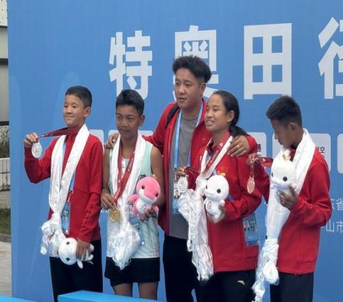 当日,来自西藏的特奥运动员们,在田径赛场上总共取得10块奖牌。他们和扎西平措一样,胸前挂着闪闪发光的奖牌,也挂着洁白无瑕的哈达。