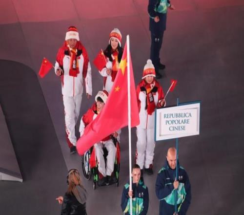中国体育代表团入场2026米兰冬残奥会开幕式。