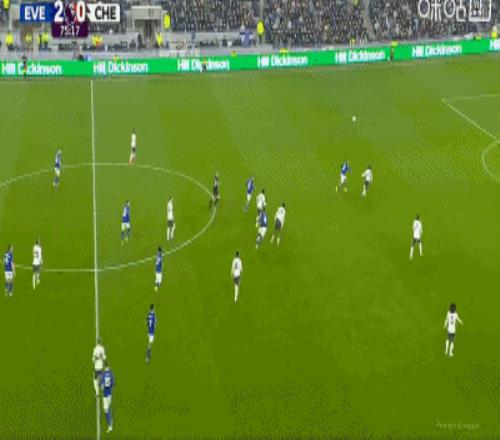 第34分钟,加纳直塞,贝托冷静挑射破门,埃弗顿1-0切尔西