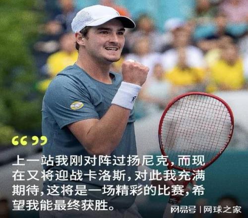 去年12月8日在美国迈阿密与丰塞卡的一场表演赛之后,世界第一阿尔卡拉斯如是说:“丰塞卡是一位特别的球员,正手非常出色,击球力量惊人,发球也很好,这正是我当年刚进入职业赛场时最需要改进的地方。他在2025赛季的表现令人印象深刻,能够跻身世界排名前25非常值得称赞。我相信他在未来两年会取得巨大的进步,在不久的将来能够进入世界前三。对他来说,达到这个目标并且努力保持顶尖水平至关重要。”
