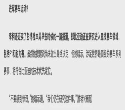 也正因如此,当外媒传出比亚迪有意进军F1的时候,国外F1车迷的反应震惊中带有一丝感叹:比亚迪真的要来颠覆F1了吗?