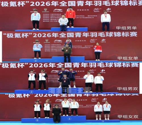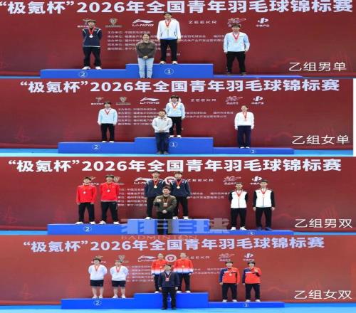 2026年全国青年羽毛球锦标赛昨天下午在福州海峡奥体中心体育馆落下帷幕,为期八天的单项赛决出各项目名次。其中,九个单项冠军由七支队伍分别夺得,江苏队和重庆队分别夺得两冠,重庆队包揽甲组和乙组两个组别的男单冠军。