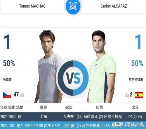 明天晚上,ATP500巴塞罗那站第二轮,阿尔卡拉斯迎来了世界排名第47位的捷克快枪手马哈奇的挑战。如果阿尔卡拉斯还不能从痛失蒙特卡洛大师赛冠军和世界第一头衔的双重打击中迅速恢复过来,提升竞技状态,马哈奇定当趁你病要你命,给予阿尔卡拉斯进一步的沉重打击。