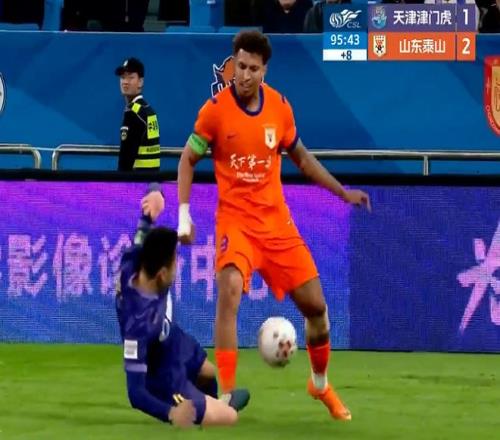 第38分钟,泰山队在进攻中制造了一些威胁,虽然击中了对手手臂,但是马德鲁加犯规在先,点球不成立。